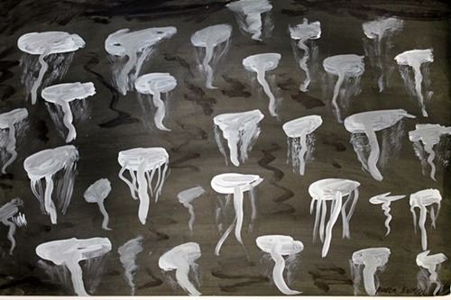 Oil on paper, attributed to Anselm Kiefer, approx. 16x13 in. Anselm Kiefer is a German painter and sculptor. He studied with Joseph Beuys and Peter Dreher during the 1970s. His works incorporate materials such as straw, ash, clay, lead, and shellac.