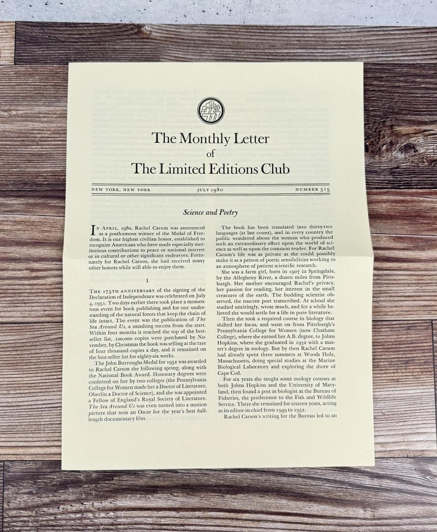 Rachel L. Carson, 1980. Limited Editions Club 1582 of 2000. Provenance- from the estate of former Ford Motor Company CEO Donald E. Petersen.