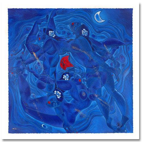 A Colorful depiction of Human Harmony! "The Sea" is a LIMITED EDITION, Hand Embellished, Serigraph that is Hand Signed by Tiefeng and comes with a Certificate of Authenticity! Measures Approx: 40.00 X 40.00 inches (with border), 36.00 X 36.00 inches (image).