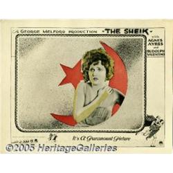 <B>The Sheik (Paramount, 1921).</B></I> Lobby Cards (2) (11" X 14"). Agnes Ayres made her film debut at Essanay Studios in Chicago, but soon left for New York where she rose to fame after she was cast in the role of Alice Joyce's younger sister in "Richard the Brazen" (1917). Paramount studios took notice, signing the young starlet in 1920, where she quickly landed major roles, appearing in films for director Cecil B. DeMille such as "The Affairs of Anatol" (1921) and "Forbidden Fruit" (1921). Ayres though is most often remembered for her role as Valentino's leading lady in, "The Sheik." Offered in this lot are two scene cards this film that feature Ms. Ayres. Both cards have pinholes in the corners and borders, but are otherwise in excellent condition. Very Fine. 2 items
