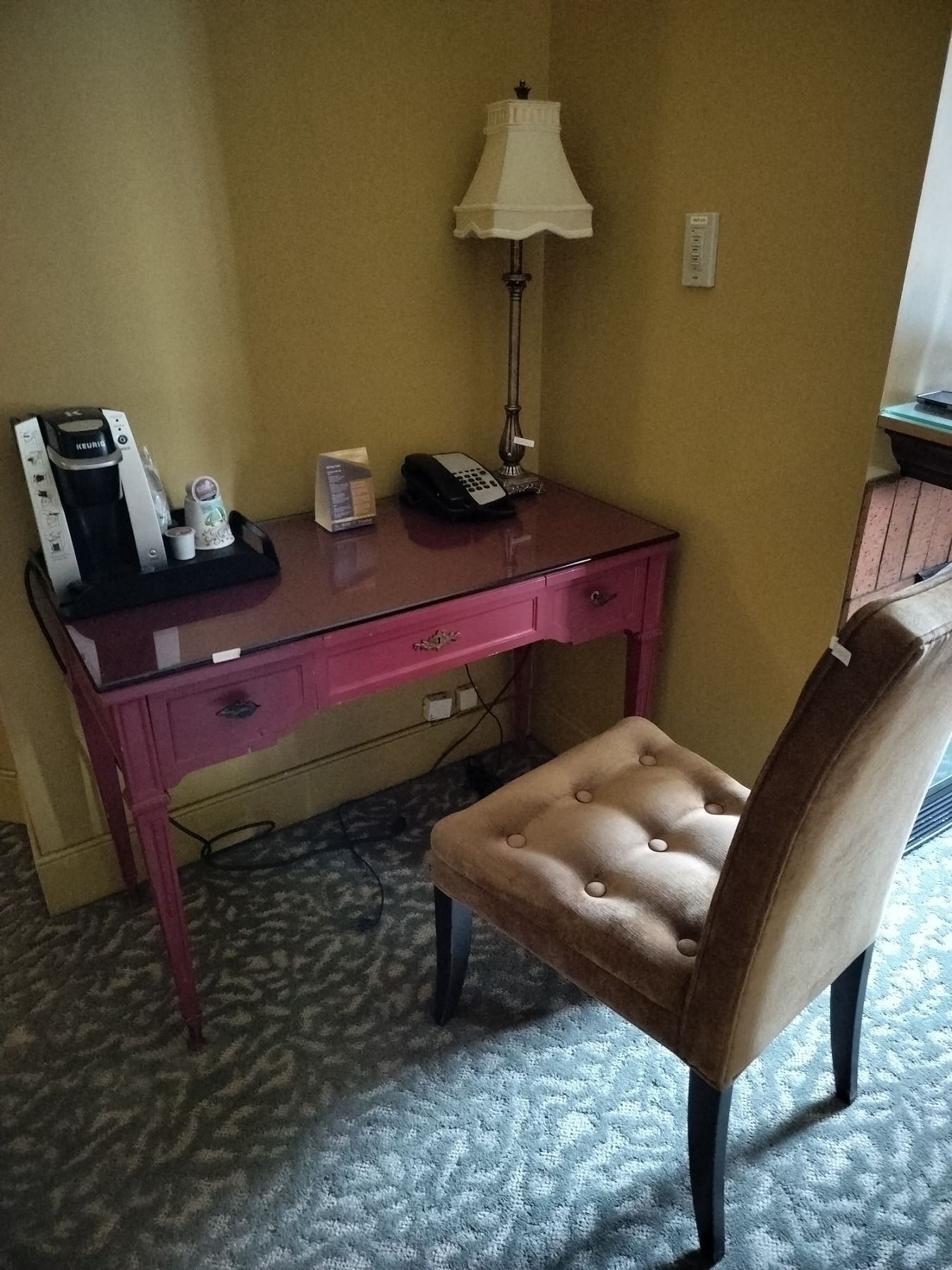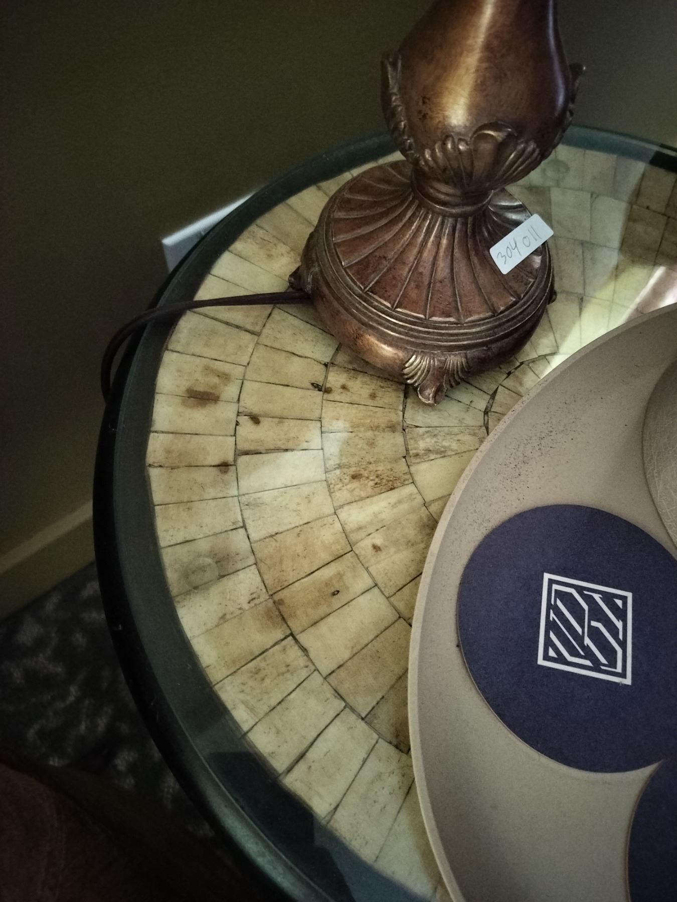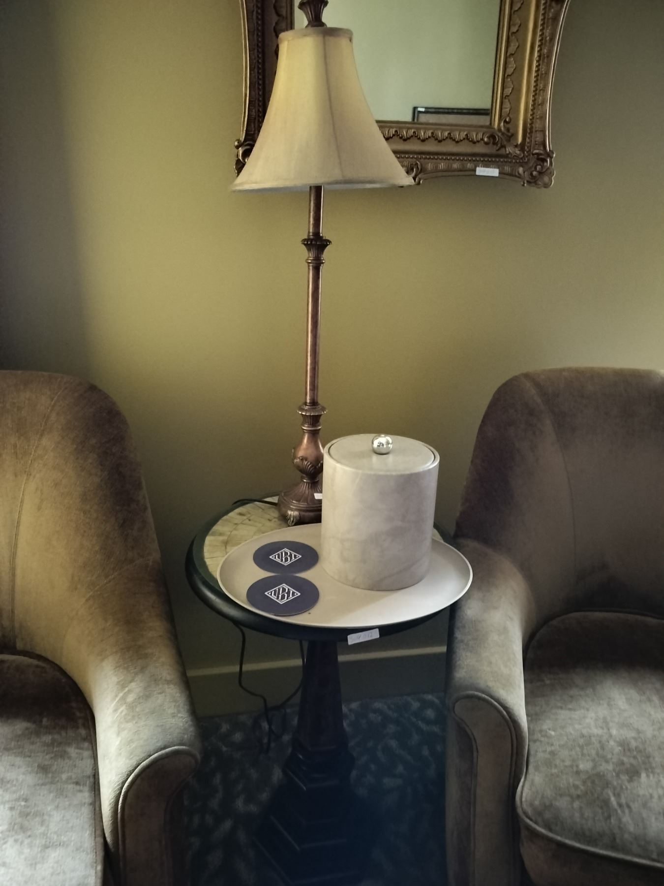 Round top end table between parlor chairs - 25.5" tall x 17" diameter