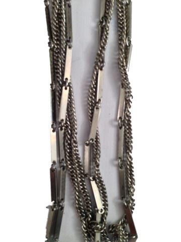 THE SHIPPING NEWS - Petal's (CATE BLANCHETT) Double Chain Necklace - This unique jewelry is made from 2 silver metal chains connected together. One chain features linked rectangular bars and other is a weaved chain made up of tiny circular links. Together, the necklace totals 44” long. This was stock jewelry for Petal (CATE BLANCHETT) during “The Shipping News!” A unique and beautiful piece of MIRAMAX movie magic!!