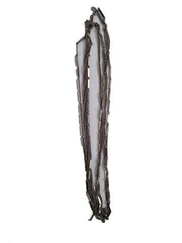 THE SHIPPING NEWS - Petal's (CATE BLANCHETT) Double Chain Necklace - This unique jewelry is made from 2 silver metal chains connected together. One chain features linked rectangular bars and other is a weaved chain made up of tiny circular links. Together, the necklace totals 44” long. This was stock jewelry for Petal (CATE BLANCHETT) during “The Shipping News!” A unique and beautiful piece of MIRAMAX movie magic!!