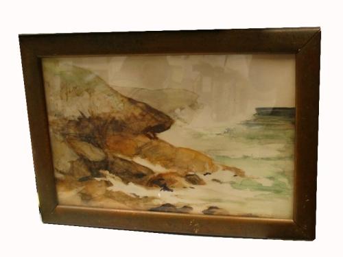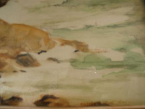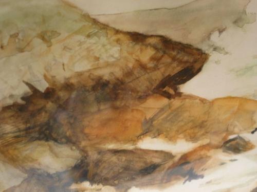 Winchell, Elizabeth Burt (American 1896-1959). Untitled, /s/ l.r., earthy watercolors on paper, abstract landscape. Minor frame damage.." 10 1/2" by 16 1/2"