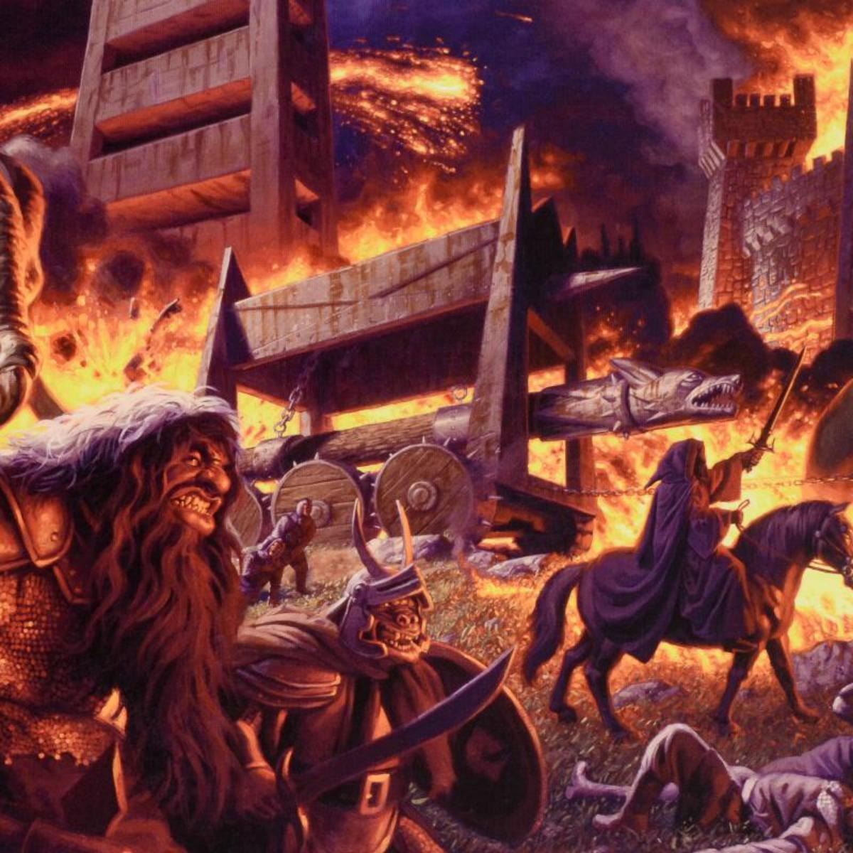 Known world wide for their fantasy and science fiction illustrations, identical twin brothers Greg and Tim Hildebrandt created an abundance of fascinating artwork, most notably their illustration work for J.R.R. Tolkien's 'The Hobbit' and 'Lord of the Rings'. "The Siege Of Minas Tirith", originally created in the 1970's for Ballantine Books, is a limited edition giclee on canvas, numbered and hand signed by Greg Hildebrandt! Includes Certificate of Authenticity! Measures approx. 35" x 17" (image). Reference #: 193702.