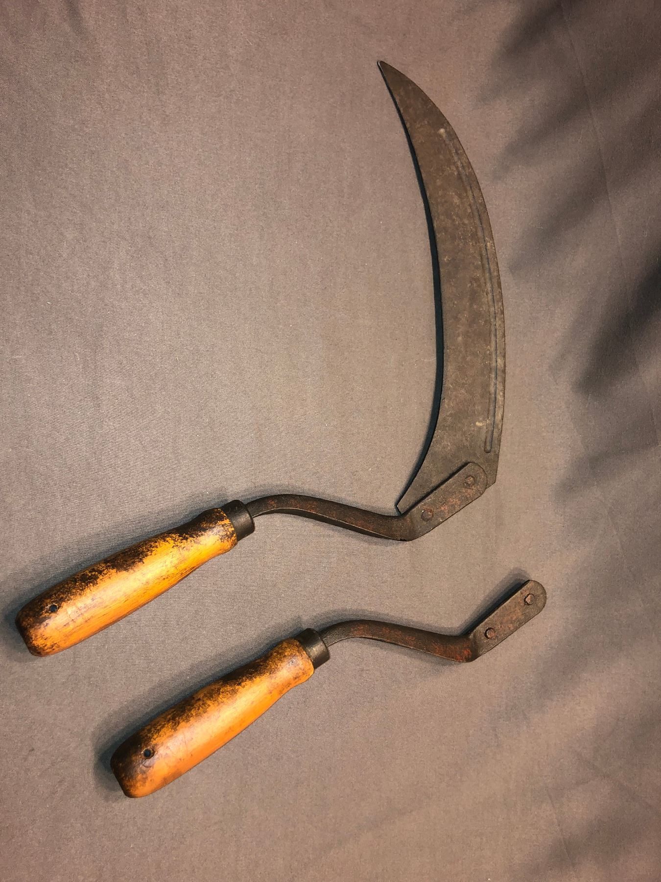 This pair of prop sickles was acquired by the production for use in The Silence.