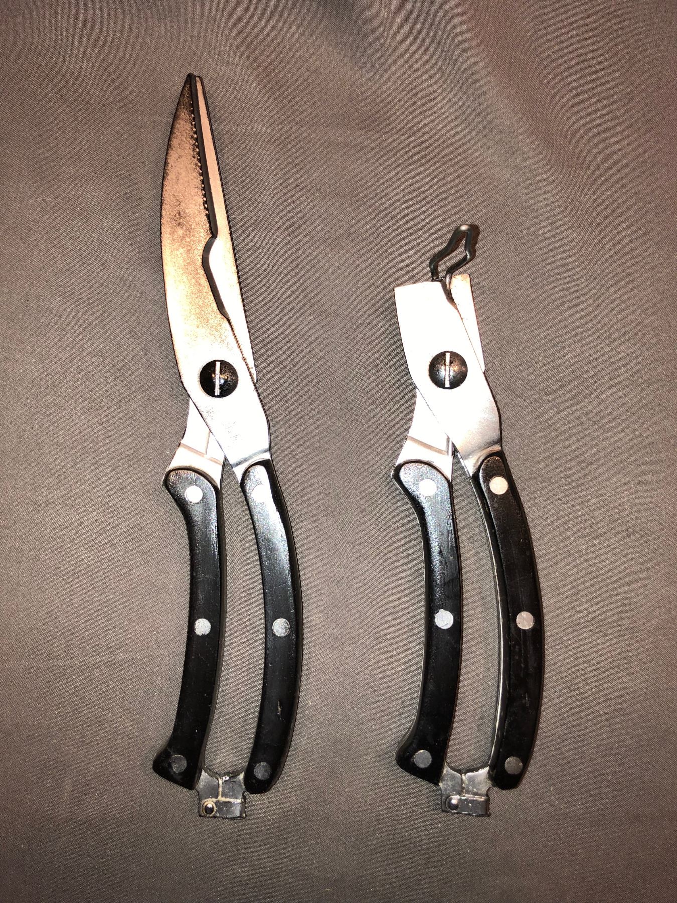 Description: set of two shears in rubber. One is stunt and second is vfx stunt with attachment to pin to body. Ally (Shipka) is injured with these props. Comes in propmasters bag with scenes marked.