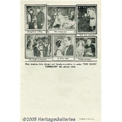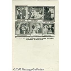 <B>The Silent Command (Fox, 1923)</B></I> Herald. In this tale of international intrigue, Edmund Lowe portrays a naval commander who must halt the destruction of the Panama Canal by spies, led by the insidious Bela Lugosi himself. Lugosi makes his American film debut in this film and he appears in one photo on the back of this four page herald. The cover has a one inch tear and some light smudging, but is other wise in fine shape. Fine.