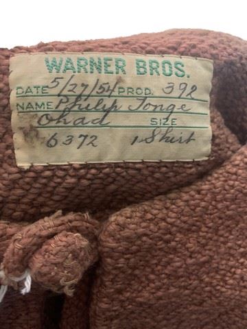 Silver Chalice (1954) - Ohad (Philip Tonge) rust colored, floor length rough woven tunic. Warner Bros. tag reads "5/27/54 Philip Tonge Ohad." This amazing memorabilia comes direct from the Debbie Reynold's archive collection.