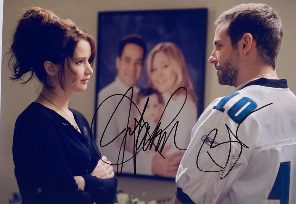The Silver Linings Playbook cast facsimile signed photo autographed by Bradley Cooper and Jennifer Lawrence. 8x10 inches. This item is a reprint of an original autograph