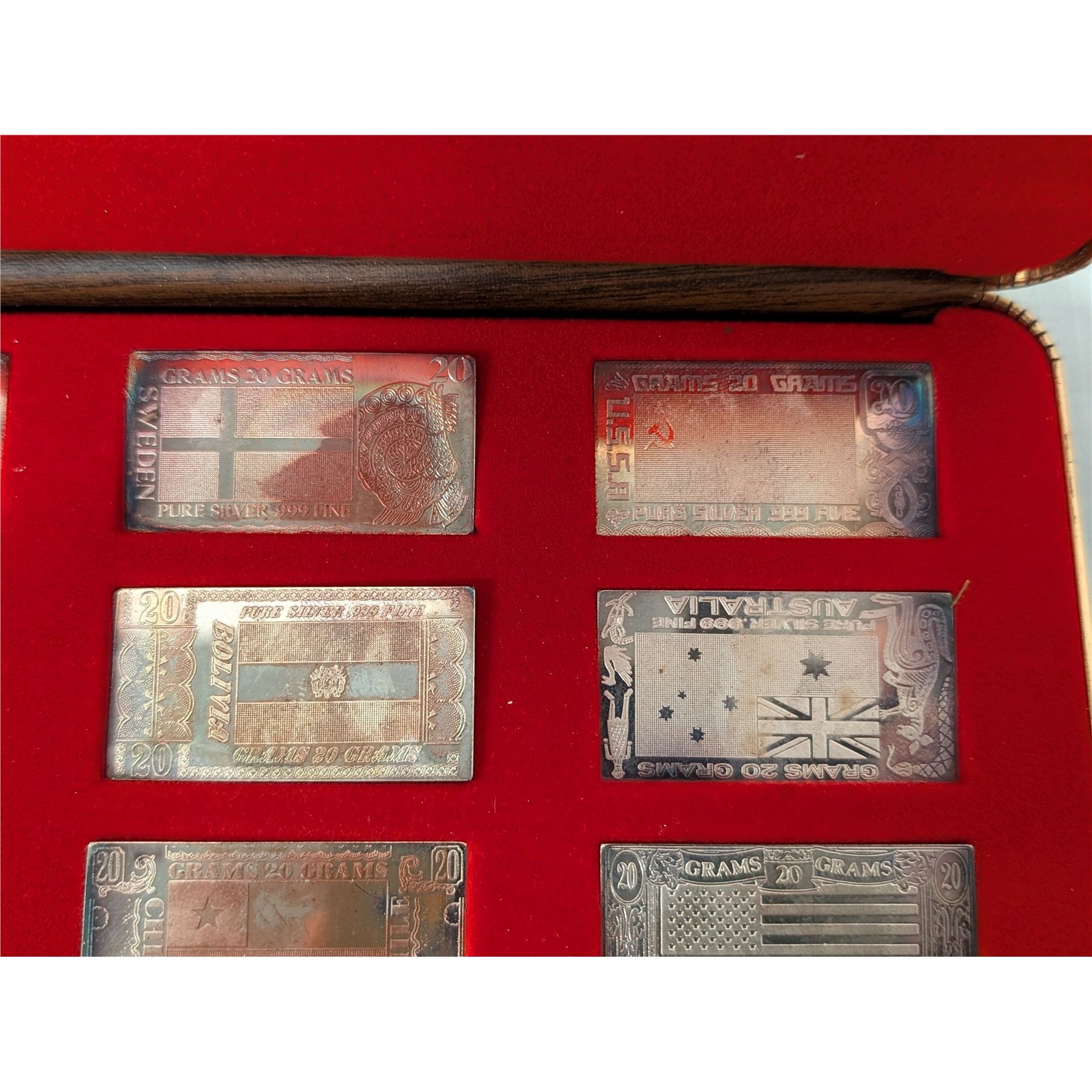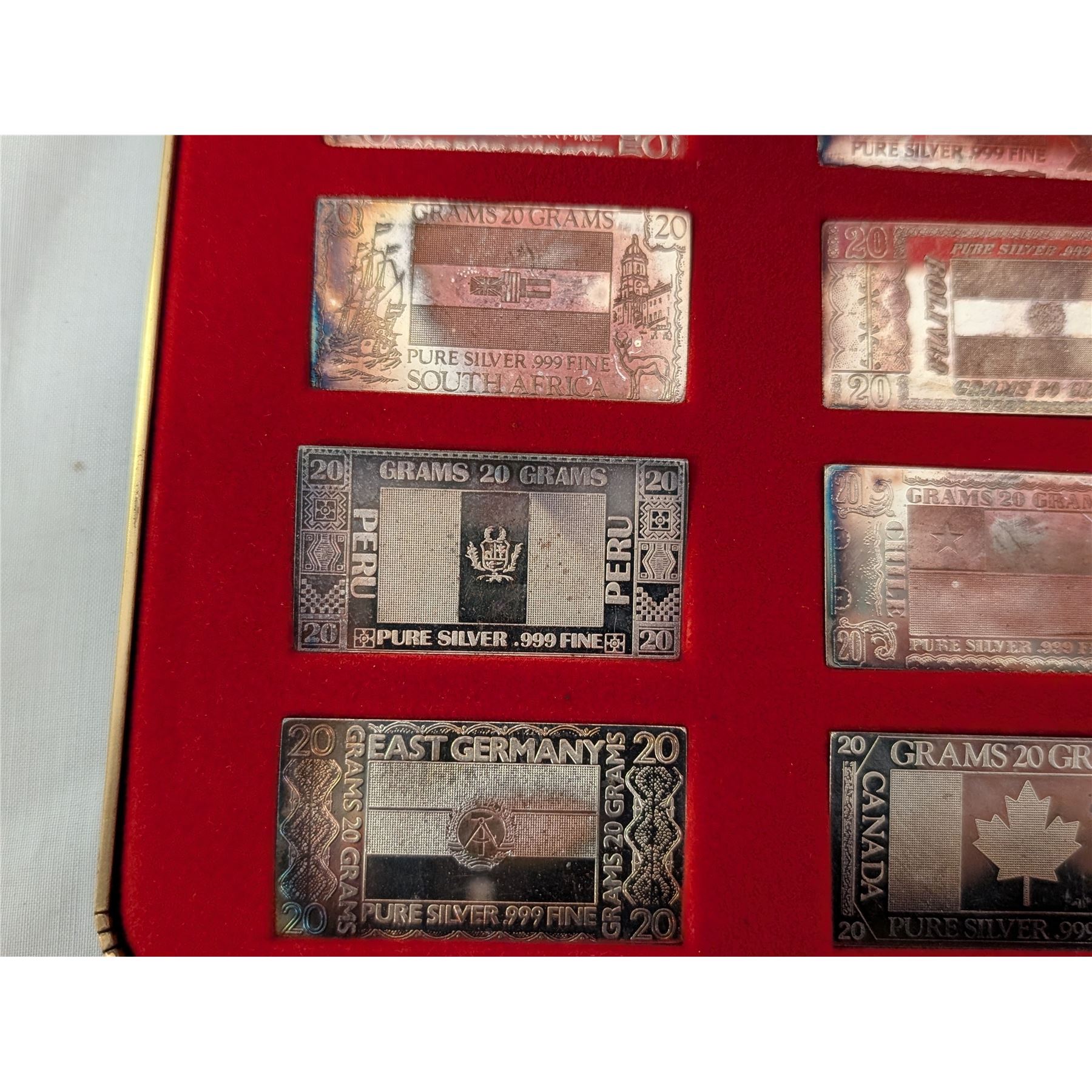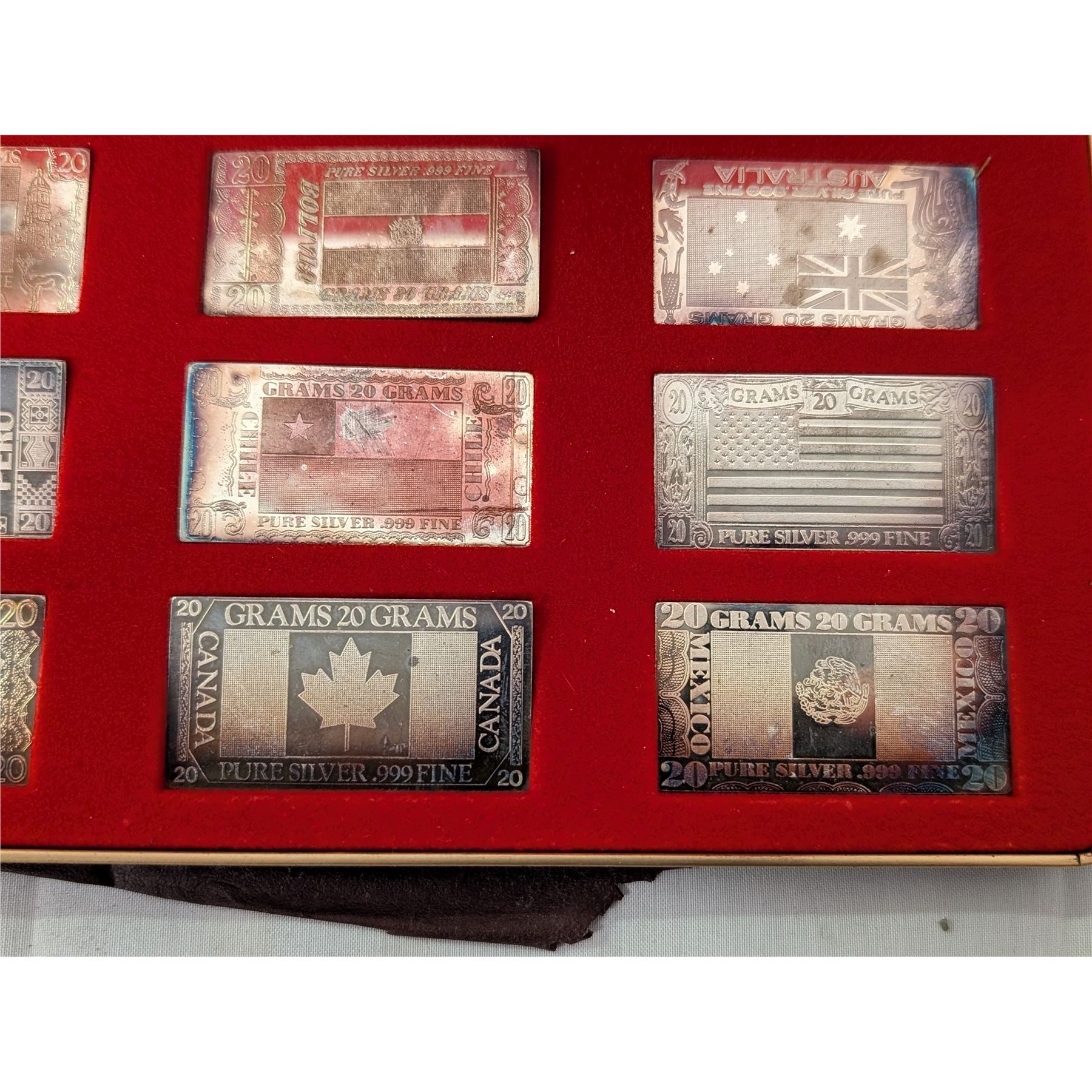 12 Nations Flags .999 Fine Silver 20 grams each