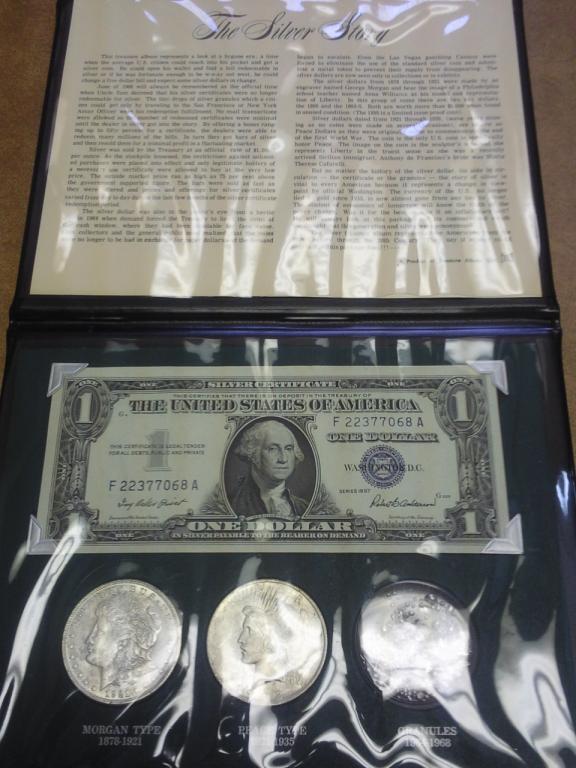 1 Dollar Gem CU Silver Certificate And Silver Granules