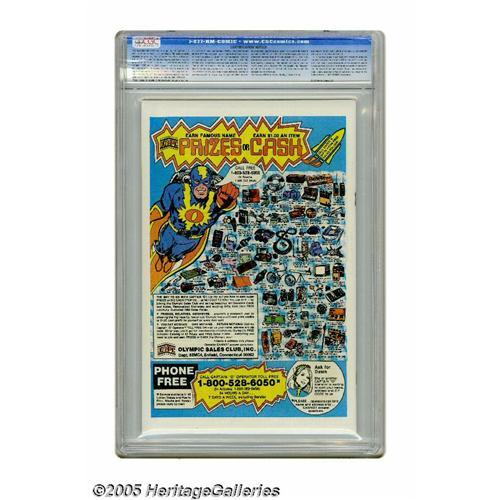 <B>The Silver Surfer V2#1 (Marvel, 1982) CGC NM/MT 9.8 Off-white pages.</B></I> John Byrne cover and art. Overstreet 2005 NM- 9.2 value = $10. CGC census 9/05: 28 in 9.8, none higher. <BR><BR><B>Important notice:</B> Heritage usually auctions material at the rate of 200-250 lots per hour. On some occasions eBay Live bid software or the Internet may not be able to keep up with the pace of the auction. We recommend placing a realistic absentee bid now as insurance to avoid disappointment. Occasionally the auctioneer may eliminate or reject an eBay Live bid, and the auctioneer may also reopen a lot after the close of the eBay live bidding (usually because we missed an audience bid), and may reject your bid even if it shows you as the winning bidder. By bidding via eBay Live, you agree that Heritage may award the lot to another bidder at its sole discretion under the circumstances described above or any other reasonable circumstances. Since eBay bids are not shown to us until we open the lot on the floor, we treat those bids just like floor bids. In most cases the floor responds before the eBay bid is presented to us, due to Internet lag time, so for consistency we have made it a policy that floor bids are always considered first over tie eBay live bids. Also please note that all Heritage lots purchased through eBay Live carry a 20% Buyer's Premium. Please make sure you read the Terms and Conditions before you bid. This lot is being auctioned in conjunction with a live floor auction by Heritage Galleries & Auctioneers. All final auction and invoice information will be supplied by Heritage Galleries & Auctioneers, and all other information should be considered preliminary. Lot:1147 <BR><BR><B>Winning Notification and Billing:</B> After the FINAL session in this auction is complete, Heritage will send e-mail and snail mail invoices. This process normally takes several days. All final auction and invoice information will be supplied by Heritage Galleries & Auctioneers, and