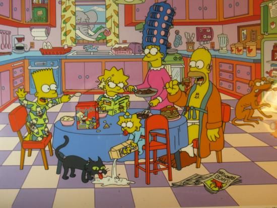 Bart Simpson and the entire family sitting around the Dinner table at their home in Springfield. USABeautifully colored sericel of Cartoon characters. Cell not framed.Estimated value of $500.00 or more