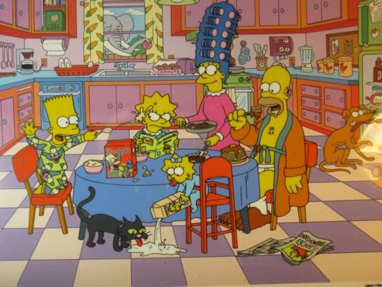 Bart Simpson and the entire family sitting around the Dinner table at their home in Springfield. USABeautifully colored sericel of Cartoon characters. Cell not framed.Estimated value of $500.00 or more