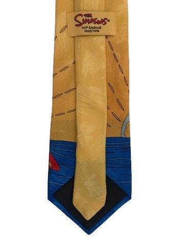 This 100% polyester 54 inch neck tie is the perfect thing to "tie" any Simpson's fan outfit together. The tie comes in a soft golden yellow polyester, and features a scene of Homer at the beach with a Surfboard during sunset.
