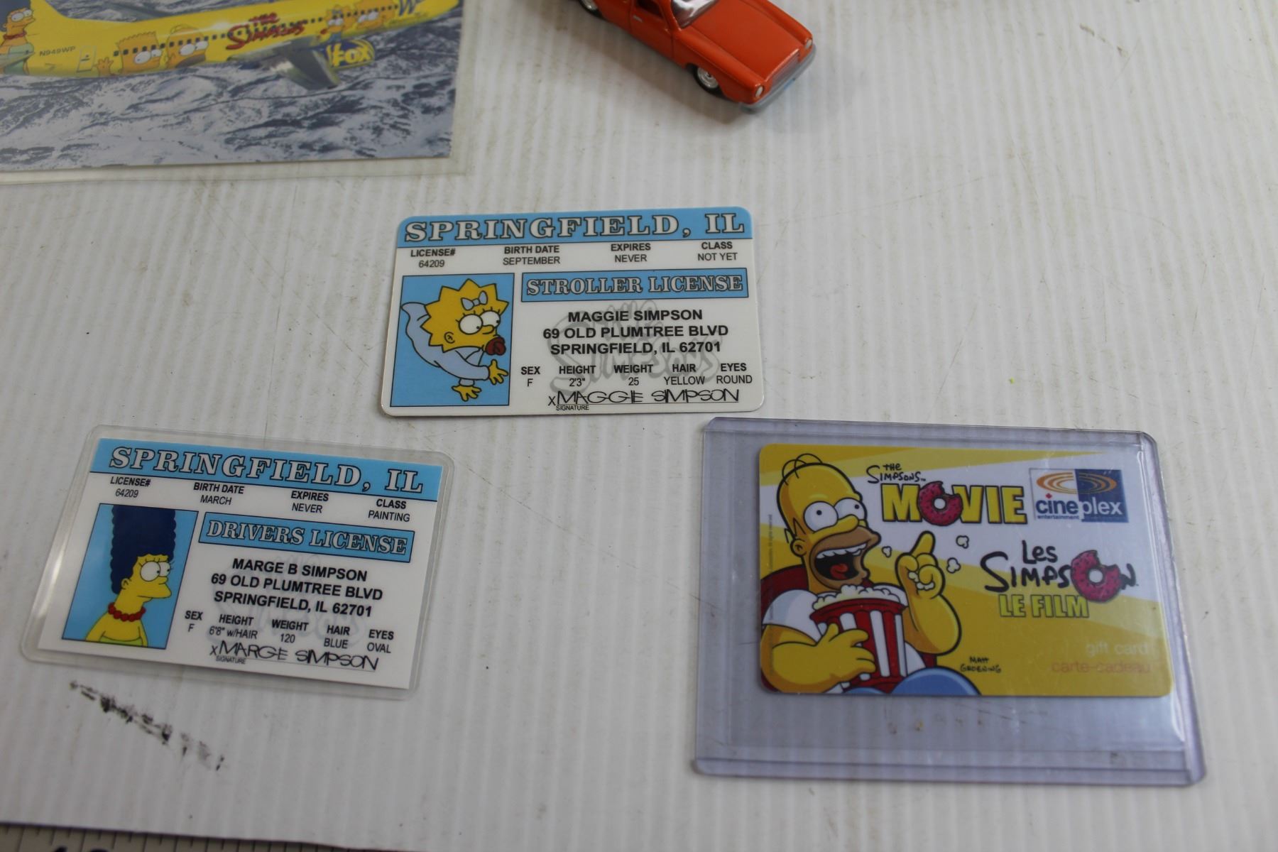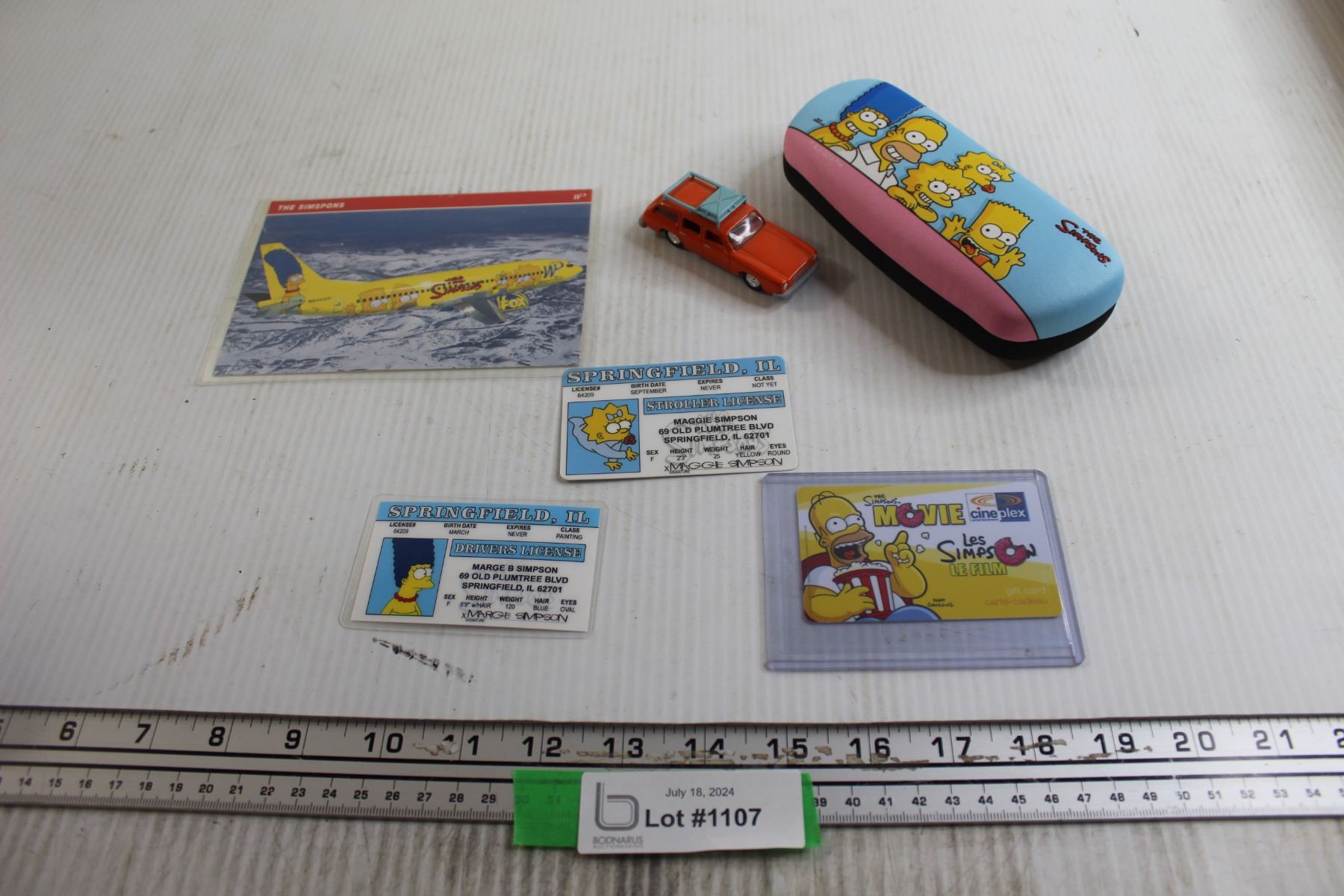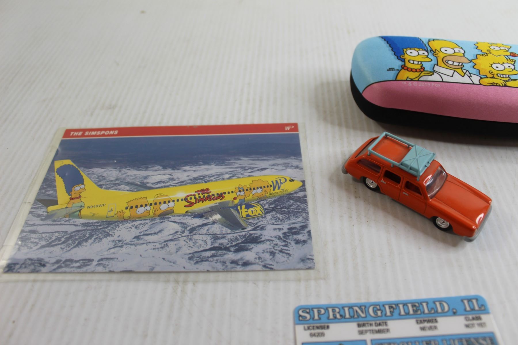 The Simpsons Glasses Case, Toy Car, Post Card, and Misc.