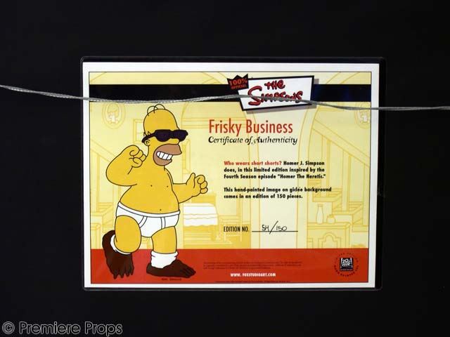The Simpsons "Frisky Business" limited edition inspired the 4th season episode "Homer The Heretic" hand painted image on giclee background inside a wood/glass frame (approx. 41" x 23" x 2.5")