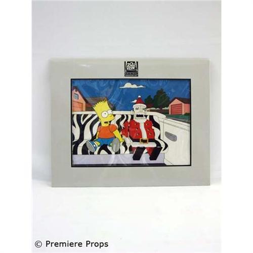 "The Simpsons" original and one of a kind hand-painted cel set up used for production. Bart with Toy Santa. Comes with certificate of authenticity. (approx. 15" x 12") (ACMA2057)