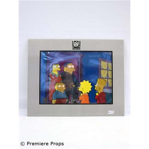 "The Simpsons" original hand-painted cel set up used for production. Bart and Lisa caroling at the Wiggums. Comes with certificate of authenticity. (approx. 15" x 12") (ACMA2060)
