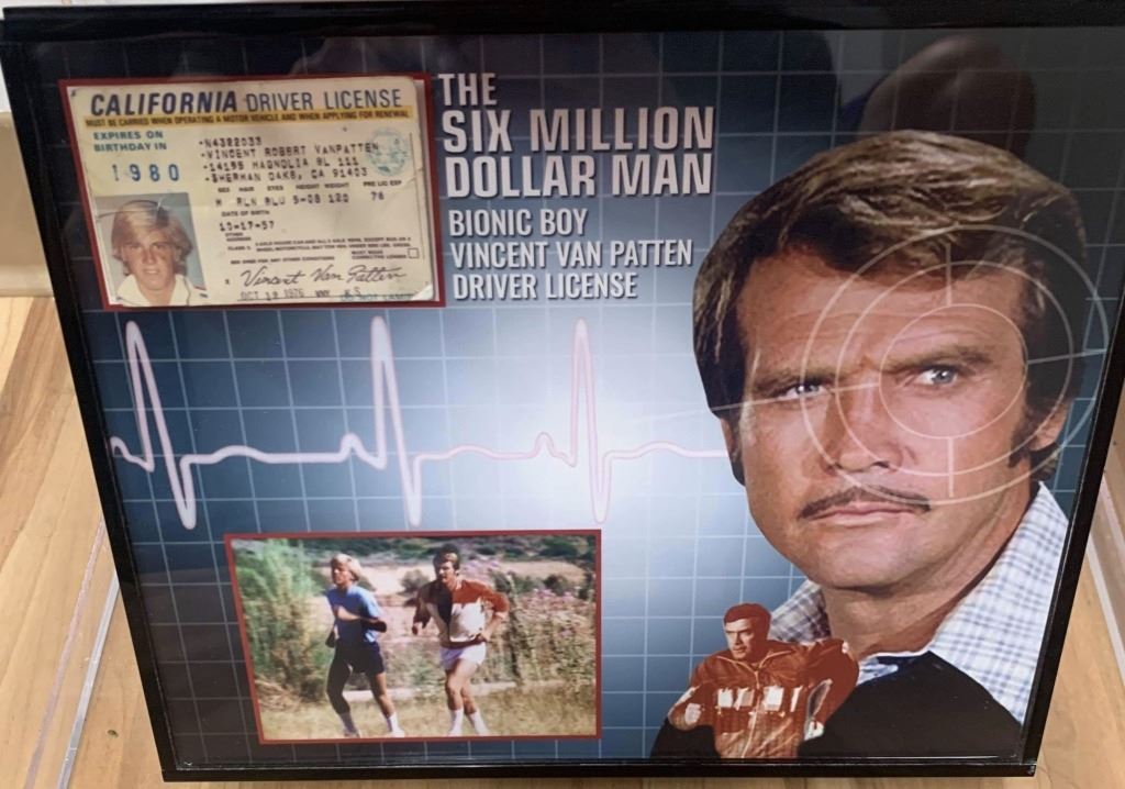 Original driver license for "Bionic Boy", played by Vincent Van Patten in the science fiction and action television series "The Six Million Dollar Man" (1974–1978), about a former astronaut, USAF Colonel Steve Austin, portrayed by Lee Majors. Austin has superhuman strength due to bionic implants and is employed as a secret agent by a fictional U.S. government office titled OSI.