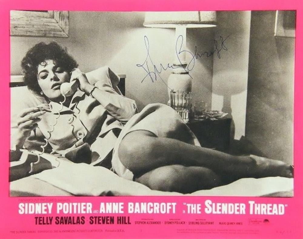 Original signed lobby card from "The Slender Thread" autographed by Anne Bancroft 14 in. by 11 in..