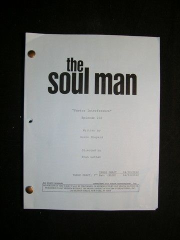 A script from the new TV Land/Cedric the Entertainer comedy series 'The Soul Man' (2012). The show features Cedric as Reverend Boyce Ballentine, who is living the high life in Las Vegas when he gets the calling to go from soul singer to soul saver, and finds it's not so easy giving up the superstar life. The script is from episode #102 titled 'Pastor Interference.' (measures approx. 8 1/2"x 11")