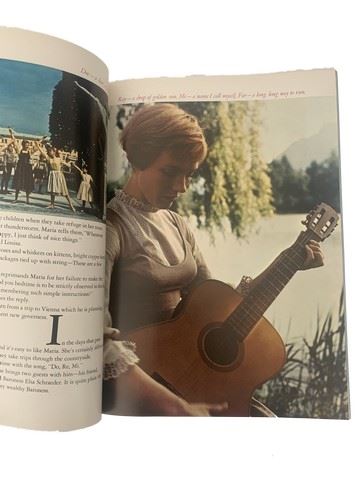 The Sound of Music (1965) souvenir book/premiere book published by National Publisher's Inc. with pictures from the film, film history narratives and actor biographies. Slight binding crease and some binding separation due to aging.