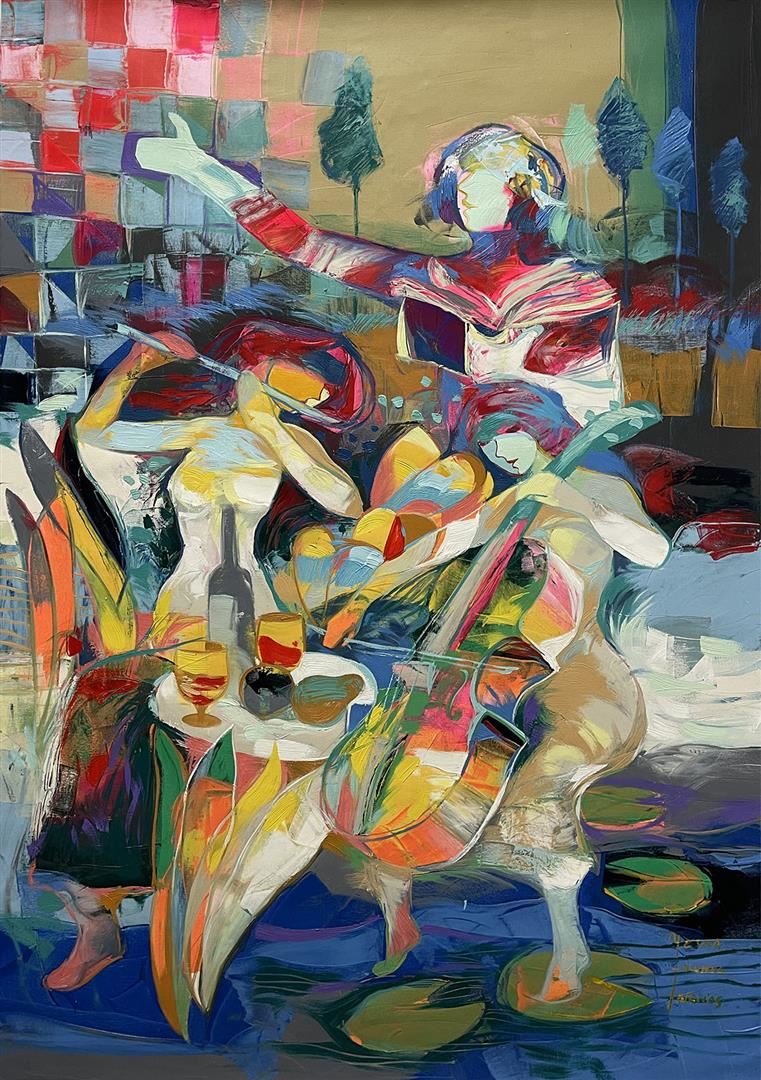 Brilliant original oil on canvas. Hand signed by artists. Artwork comes with a certificate of authenticity. This artwork comes rolled. Size 39x59"