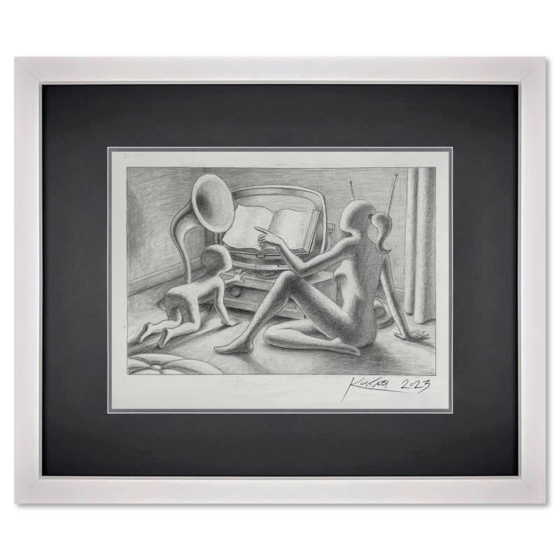 "The Sound of Now - New York" is an original drawing on paper by Mark Kostabi, hand signed by the artist. This piece comes custom framed. Includes Certificate of Authenticity. Measures approx. 13" x 15" (frame), 7" x 9" (image).