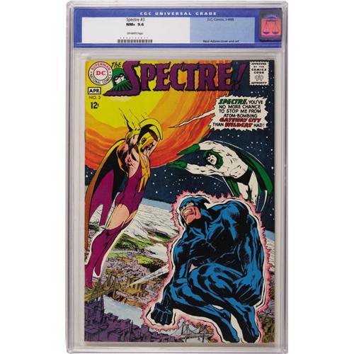 <B>The Spectre #3 (DC, 1968) CGC NM+ 9.6 Off-white pages.</B></I> Neal Adams cover and art. Overstreet 2006 NM- 9.2 value = $125. CGC census 10/06: 14 in 9.6, 1 higher.<BR><BR><b>Shipping:</b> Slabbed Comic (<a target="_blank" href="http://www.heritageauctions.com/common/shipping.php">view shipping information</a>)