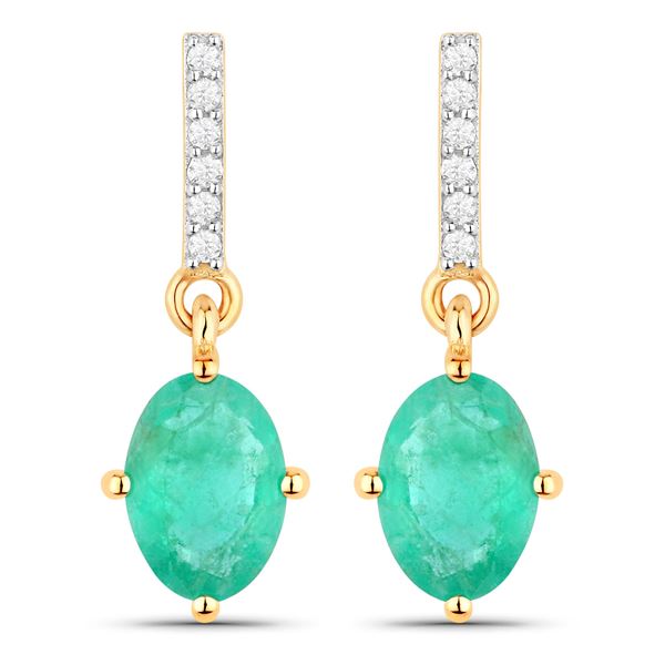 Zambian Emerald & Natural Diamond Dangle Earrings