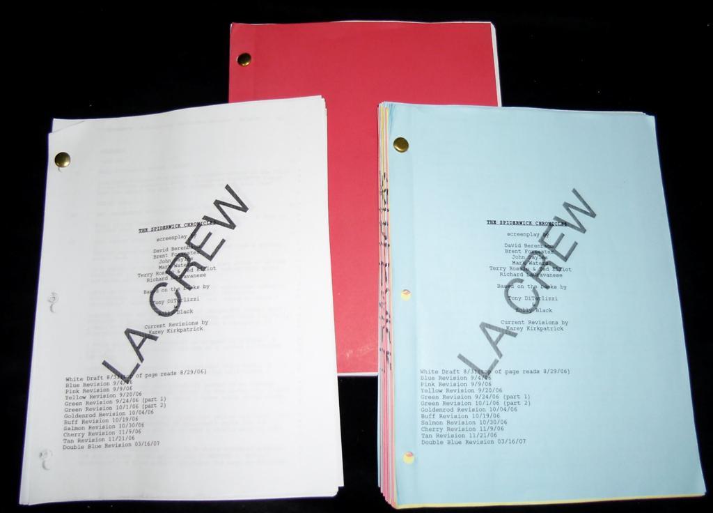 The Spiderwick Chronicles (2008) - Three original production drafts of the screenplay, the most current with colored pages and revisions dated 3/16/07.