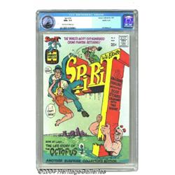 The Spirit #2 Pacific Coast Pedigree (Harvey, 1967) CGC NM+ 9.6 Off-white to white pages. Tough to find second issue of this Will Eisner masterpiece. The nearly perfect condition is verified by CGC, no other certified copies of this issue have been graded higher to date. Overstreet 2003 NM 9.4 value = $70. Important notice: Heritage usually auctions material at the rate of 200-250 lots per hour. On some occasions eBay Live bid software or the Internet may not be able to keep up with the pace of the auction. We recommend placing a realistic absentee bid now as insurance to avoid disappointment. Occasionally the auctioneer may eliminate or reject an eBay Live bid, and the auctioneer may also reopen a lot after the close of the eBay live bidding (usually because we missed an audience bid), and may reject your bid even if it shows you as the winning bidder. By bidding via eBay Live, you agree that Heritage may award the lot to another bidder at its sole discretion under the circumstances described above or any other reasonable circumstances. Since eBay bids are not shown to us until we open the lot on the floor, we treat those bids just like floor bids. In most cases the floor responds before the eBay bid is presented to us, due to Internet lag time, so for consistency we have made it a policy that floor bids are always considered first over tie eBay live bids. Also please note that all Heritage lots purchased through eBay Live carry a 20% Buyer's Premium. Please make sure you read the Terms and Conditions before you bid.