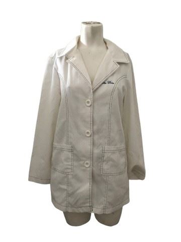The Spirit (2008) -Dr. Ellen Dolan (Sarah Paulson) white with black stitch trim lab coat with 3 buttons and two lower pockets. Made by Los Angeles Rose Inc. (size S) with her name embroidered on the left chest. From the set of production.