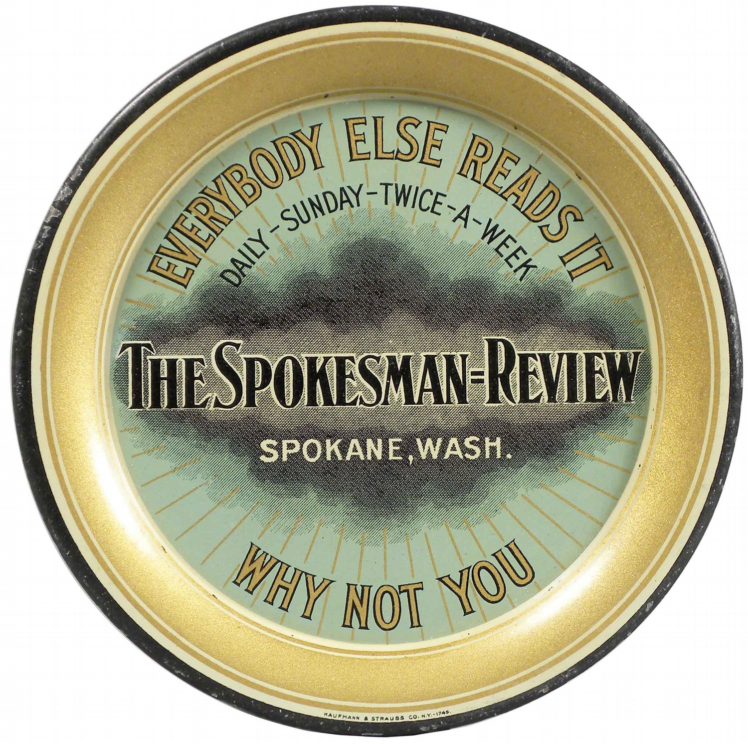 The Spokesman=Review Tin Tip Tray. Spokane, Wash. Everybody else reads it why not you? Some very minor edge ware otherwise near mint condition.
