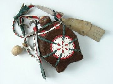 From the classic Roger Moore Bond film "The Spy Who Loved Me" (1977), this is a wooden canteen background prop. It has fur covering, and elaborate leather carrying harness with leather flower design on each side. (approx. 11" x 6.5" 2.5")
