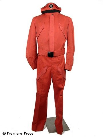 From one of the best Roger Moore Bond films, "The Spy Who Loved Me" (1977), which takes place a great deal underwater, and has Bond rescuing both a British and Russian nuclear subs, here is a screen used full iconic red belted crew submarine jumpsuit outfit, complete with hat.