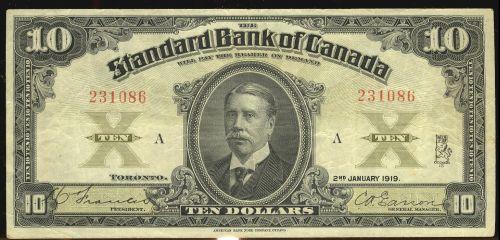 The Standard Bank of Canada 1919 $10 CH-695-18-20 "Francis" 231086 VF/VF+. Scarce note, seldom offered!