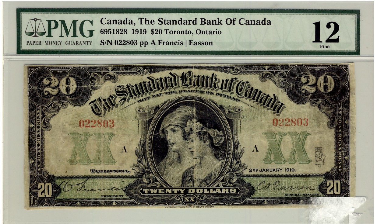 The Standard Bank of Canada 1919 $20 022803 CH 695-18-28 PMG F12