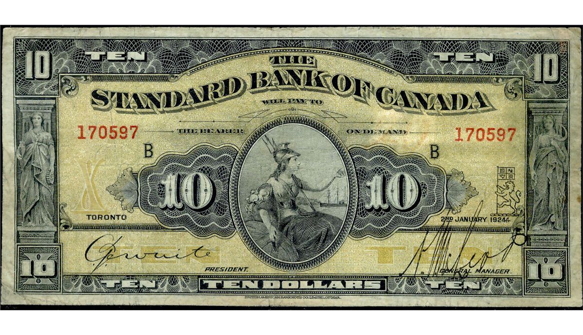The Standard Bank of Canada; 1924 $10 #170597 CH-695-20-04 PMG F12.