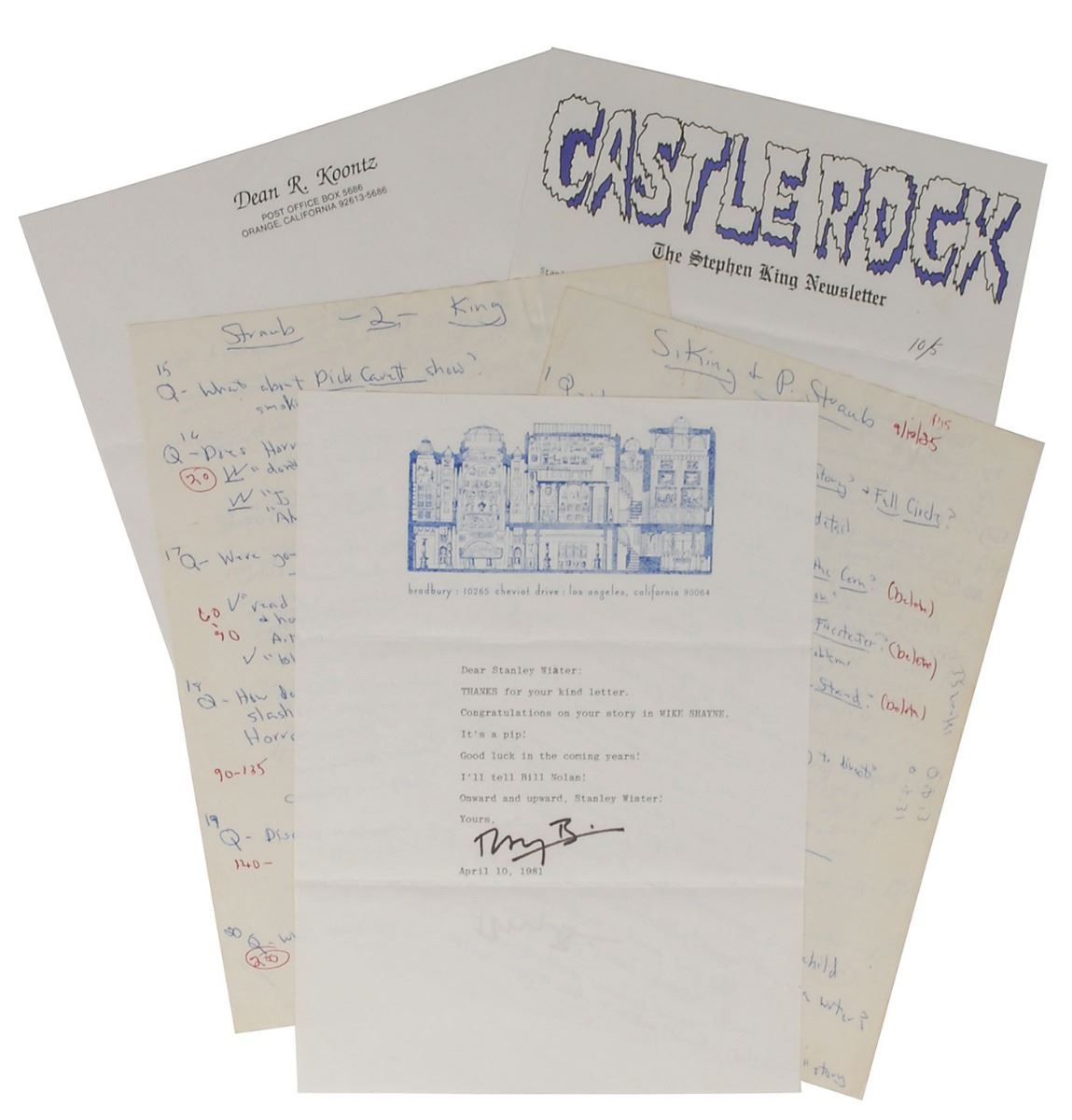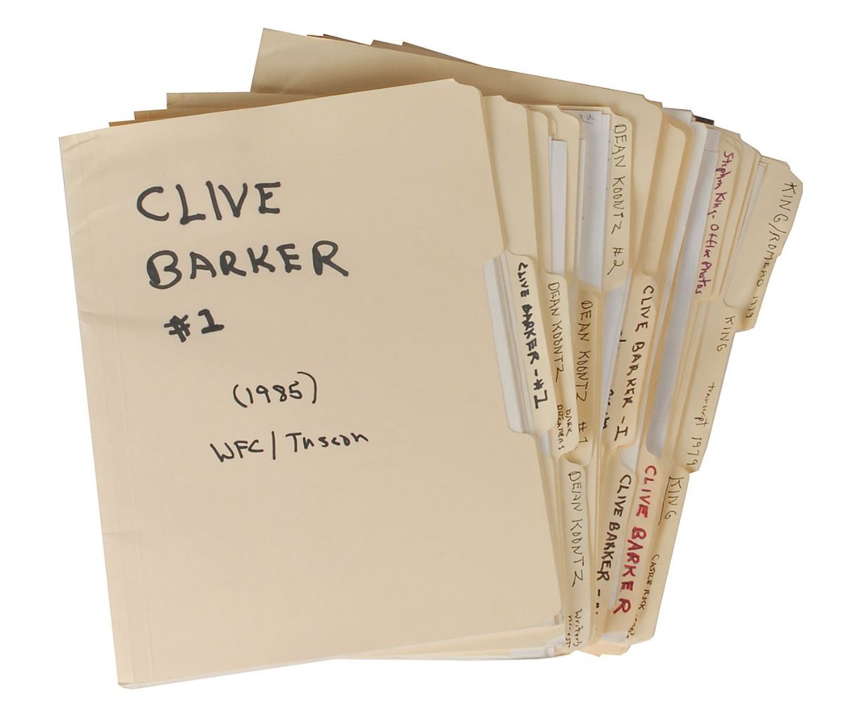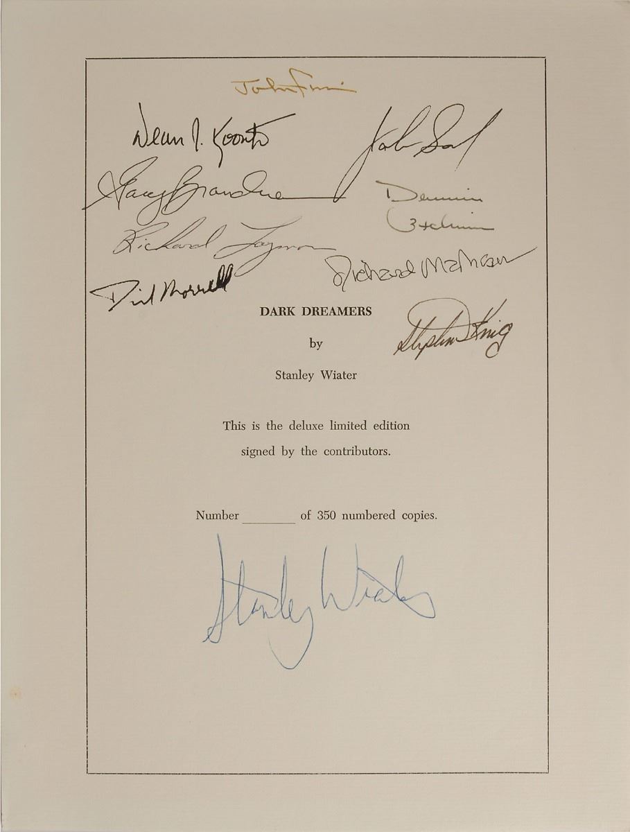 The Stanley Wiater archive of modern horror literature comprehensively documents the history of the world’s most terrifying genre. A three-time winner of the illustrious Bram Stoker Award, Wiater has earned distinction as a writer, editor, anthologist, journalist, and collector over the course of four decades, with his contributions adding significantly to the growth and visibility of the genre. The enormous archive consists of over one hundred boxes of material from throughout Wiater’s remarkable career, broken down as follows: 79 banker’s boxes; 14 smaller boxes; four typewriter paper boxes; two bins of assorted posters and artwork; three 100–slot trays of audio tapes; and 27 books contributed to or edited by Wiater.