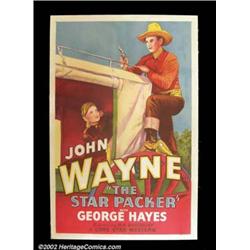 The Star Packer (Lone Star 1934) One Sheet (27" X 41") John Wayne stars in this B western alongside George Gabby Hayes and stuntman Yakima Canutt! A rare opportunity to acquire an early western one sheet featuring the legend! Fine on Linen.Important notice: We expect to be auctioning lots at the rate of 200-250 per hour. Sometimes eBay Premier live bid software cannot keep up with that pace, so we strongly recommend that you place a realistic proxy bid now as insurance to avoid disappointment. Also please note that all Heritage/CAA lots purchased through eBay Premier carry a 20% Buyer's Premium.