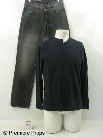 Michael Harding's (Penn Badgley) screen worn dark blue long sleeve with two buttons at collar "French Connection" shirt, (Size L) and black denim button fly five pocket "Nobody" jeans. (Size 31x33) Includes wardrobe tag!