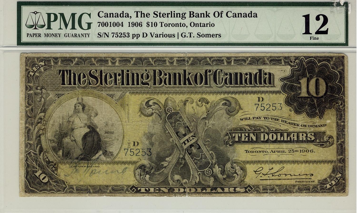 The Sterling Bank of Canada, 1906 $10 #75253, CH-700-10-04, PMG F12.