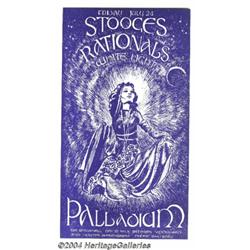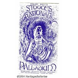 The Stooges - Music Memorabilia Handbill Group (1970). Iggy and the Stooges triumphantly return to the Palladium in Detroit for this show in the summer of 1970. This is a pair of mint handbills from that show, but collectors should note that the reverse negative one is much tougher to come by. A great group from the man who is considered the "Godfather" of Punk. Important notice: Heritage usually auctions material at the rate of 200-250 lots per hour. On some occasions eBay Live bid software or the Internet may not be able to keep up with the pace of the auction. We recommend placing a realistic absentee bid now as insurance to avoid disappointment. Occasionally the auctioneer may eliminate or reject an eBay Live bid, and the auctioneer may also reopen a lot after the close of the eBay live bidding (usually because we missed an audience bid), and may reject your bid even if it shows you as the winning bidder. By bidding via eBay Live, you agree that Heritage may award the lot to another bidder at its sole discretion under the circumstances described above or any other reasonable circumstances. Since eBay bids are not shown to us until we open the lot on the floor, we treat those bids just like floor bids. In most cases the floor responds before the eBay bid is presented to us, due to Internet lag time, so for consistency we have made it a policy that floor bids are always considered first over tie eBay live bids. Also please note that all Heritage lots purchased through eBay Live carry a 20% Buyer's Premium. Please make sure you read the Terms and Conditions before you bid.