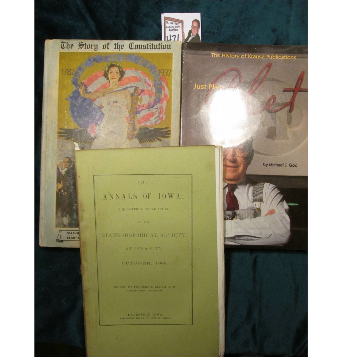 "The Story of the Constitution", by Sol Bloom, U.S. Constitution Sesquicentennial Commission, House Office Building, Washington, D.C., c. 1937; "The Annals of Iowa; A Quarterly Publication, by the State Historical Society, at Iowa City. July, 1866, which includes a Steel Engraving of Union Army General Crocker; & new in wrapper "The History of Krause Publications Just Plain Chet", by Michael J. Goc.