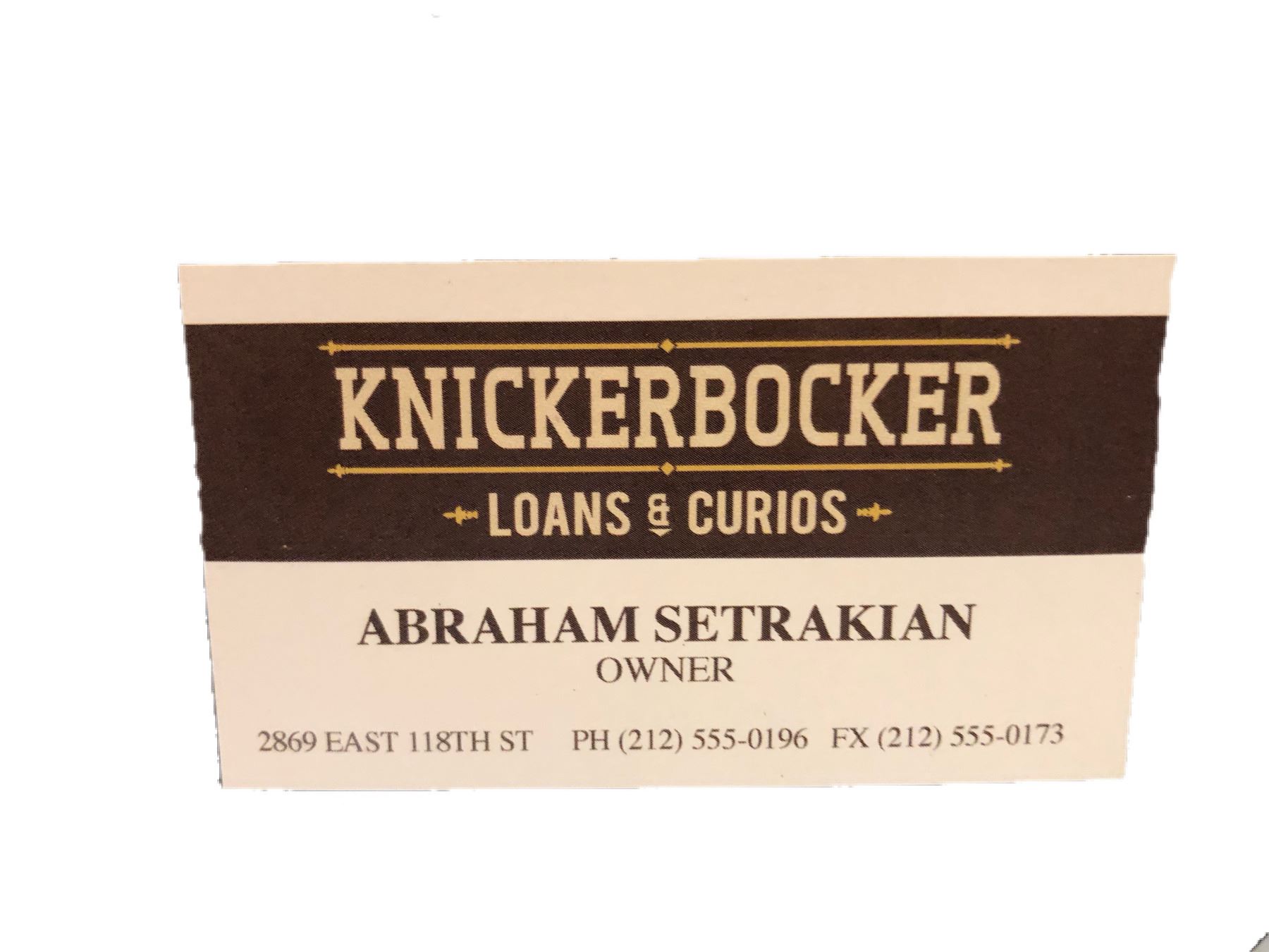 Used in Season 1 by one of the characters to find Professor Setrakian's pawn shop in New York. This is a custom made business card with a telephone number inscribed in pen on the reverse.