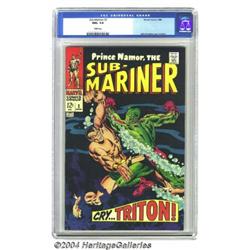 <B>The Sub-Mariner #2 (Marvel, 1968) Condition: NM+ 9.6 White pages.</B></I> Great cover of Prince Namor brawling with the Inhuman Triton. John Buscema cover and art. Overstreet 2004 NM- 9.2 value = $100. <BR><BR><B>Important notice:</B> Heritage usually auctions material at the rate of 200-250 lots per hour. On some occasions eBay Live bid software or the Internet may not be able to keep up with the pace of the auction. We recommend placing a realistic absentee bid now as insurance to avoid disappointment. Occasionally the auctioneer may eliminate or reject an eBay Live bid, and the auctioneer may also reopen a lot after the close of the eBay live bidding (usually because we missed an audience bid), and may reject your bid even if it shows you as the winning bidder. By bidding via eBay Live, you agree that Heritage may award the lot to another bidder at its sole discretion under the circumstances described above or any other reasonable circumstances. Since eBay bids are not shown to us until we open the lot on the floor, we treat those bids just like floor bids. In most cases the floor responds before the eBay bid is presented to us, due to Internet lag time, so for consistency we have made it a policy that floor bids are always considered first over tie eBay live bids. Also please note that all Heritage lots purchased through eBay Live carry a 20% Buyer's Premium. Please make sure you read the Terms and Conditions before you bid. </span></font></tr></table></td></tr></table>