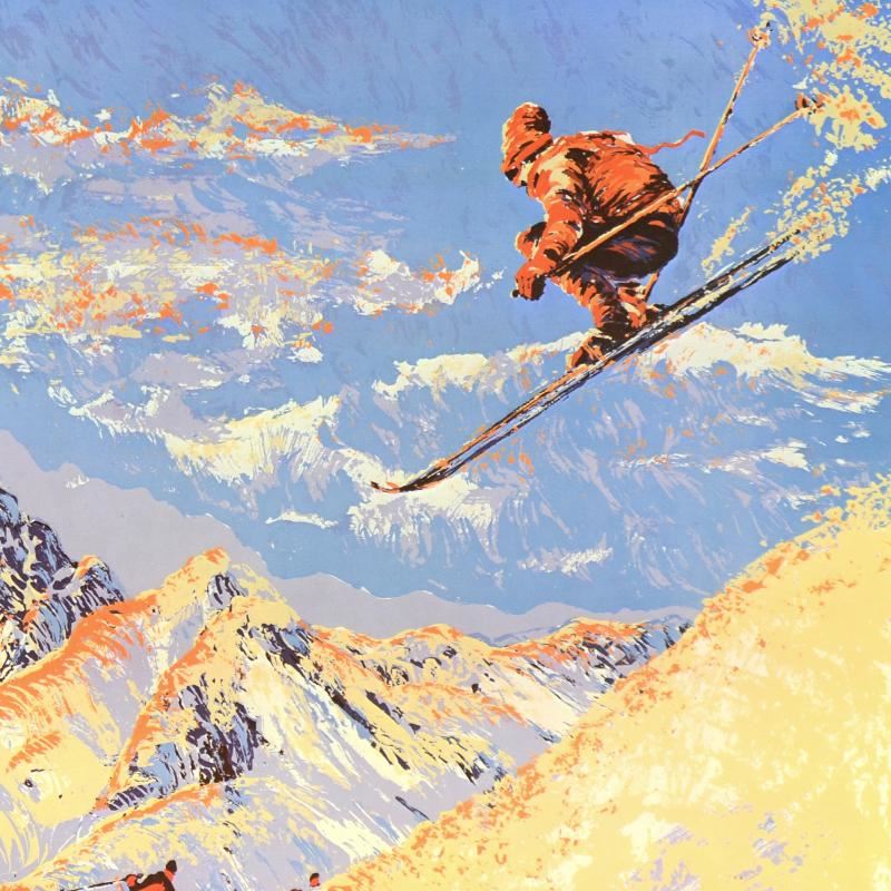 "The Sunset Skier" is a limited edition serigraph on paper from a PP edition and hand signed by Paul Blaine Henrie (1932-1999)! Includes Certificate of Authenticity! Measures approx. 26" x 20" (border), 19" x 15" (image).